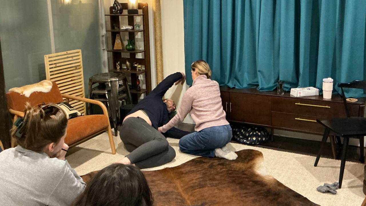 We begin the evening with a 30 minute guided self-massage to help you connect to your body, breath, and nervous system. From there, we move into live coaching, working with singers to explore how breath, pressure, movement, and coordination shape vocal function in real time.